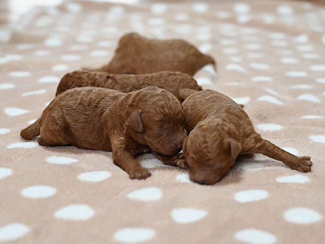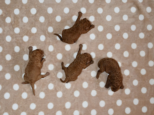 お問い合わせ番号: S_359 仔犬掲載日:2025/12/02 最終更新日:2025/12/02 トイプードル 男の子 2匹 女の子 2匹 親犬コメント 母性の強いお母さんで子育てもとても上手です。 仔犬コメント 11月26日にトイプードルが産まれました。健康状態はまだ保障が出来ないため正式にお譲りする事ができません。1月上旬頃に仔犬販売へ掲載予定です。仔犬中売掲載前に飼い主様が決まる事も御座いますので現在の状況についてはお気軽にメール、お電話でお問い合わせ下さい。お客様へのお渡しは生後60日前後となります。予約制となっておりますのでご見学に関しては必ず事前にご連絡下さい。 ▲ 画像クリックで拡大します。