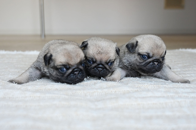 お問い合わせ番号: S_357 仔犬掲載日:2025/11/14 最終更新日:2025/11/30 パグ 男の子 1匹 女の子 2匹 親犬コメント 美人でとても性格も良いお母さんです。 仔犬コメント 11月11日にパグが産まれました。健康状態はまだ保障が出来ないため正式にお譲りする事ができません。12月下旬頃に仔犬販売へ掲載予定です。仔犬中売掲載前に飼い主様が決まる事も御座いますので現在の状況についてはお気軽にメール、お電話でお問い合わせ下さい。お客様へのお渡しは生後60日前後となります。予約制となっておりますのでご見学に関しては必ず事前にご連絡下さい。 関連URL https://ameblo.jp/koinu-aporo/entry-12946066909.html https://ameblo.jp/koinu-aporo/entry-12948511320.html ▲ 画像クリックで拡大します。 11月30日撮影 11月30日撮影 パグブリーダー パグブリーダー