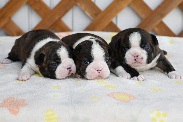 お問い合わせ番号: S_370 仔犬掲載日:2026/02/11 最終更新日:2026/02/28 ボストンテリア 男の子 2匹 女の子 1匹 親犬コメント とても優しく可愛いお母さんです。面倒見も良く赤ちゃんはコロコロしています 仔犬コメント 2月6日にボストンテリアが産まれました。健康状態はまだ保障が出来ないため正式にお譲りする事ができません。3月中旬頃に仔犬販売へ掲載予定です。仔犬販売掲載前に飼い主様が決まる事も御座いますので現在の状況についてはお気軽にメール、お電話でお問い合わせ下さい。お客様へのお渡しは生後60日前後となります。予約制となっておりますのでご見学に関しては必ず事前にご連絡下さい。※仔犬販売掲載前にご家族が決まりました 関連URL https://ameblo.jp/koinu-aporo/entry-12956373102.html https://ameblo.jp/koinu-aporo/entry-12957857172.html ▲ 画像クリックで拡大します。 2月24日撮影 2月24日撮影 ボストンテリアブリーダー ボストンテリアブリーダー