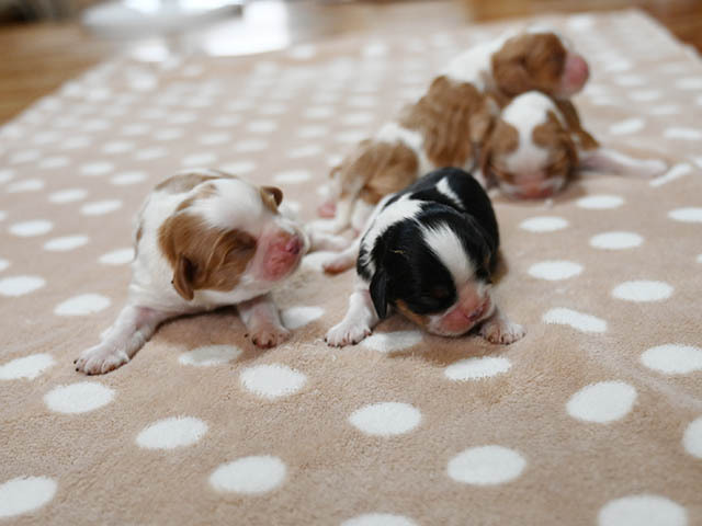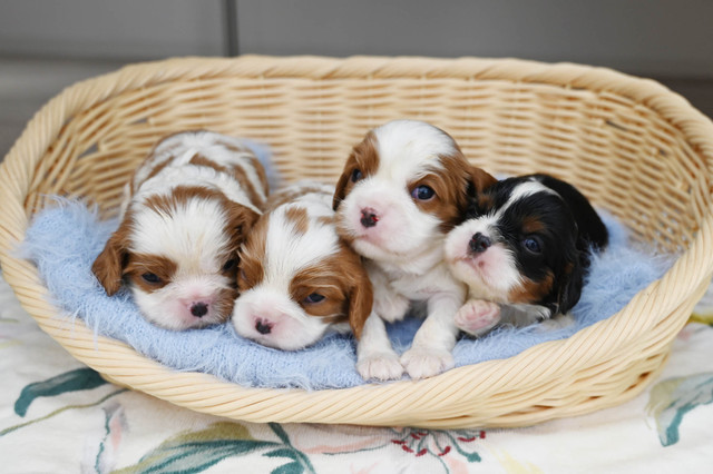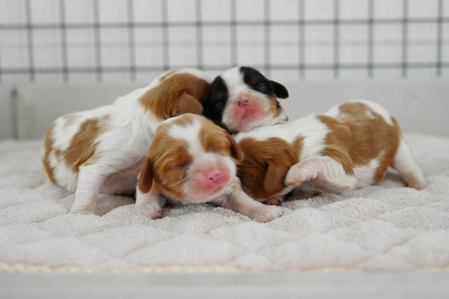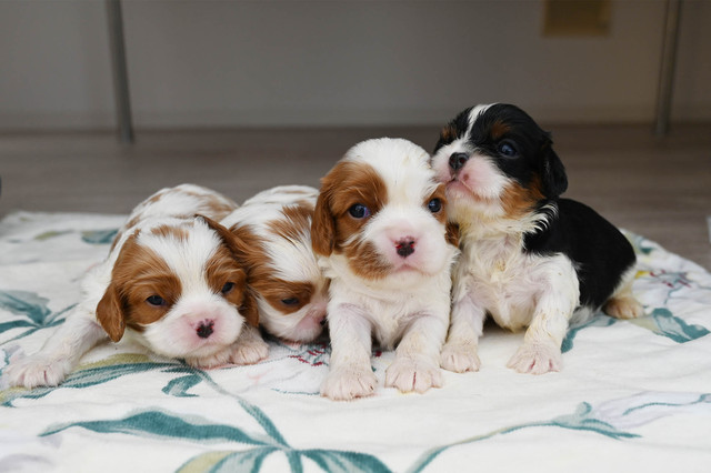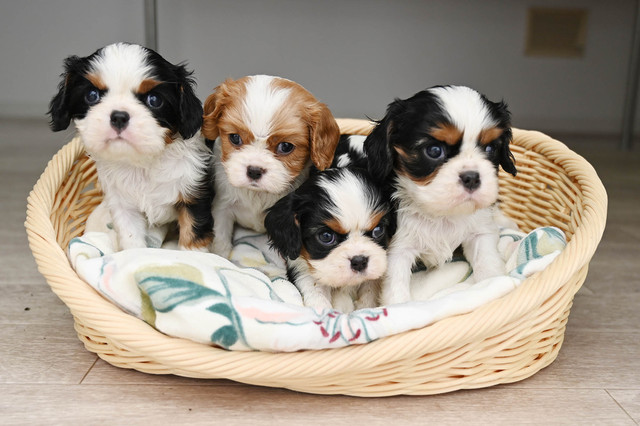 お問い合わせ番号: S_351 仔犬掲載日:2025/10/10 最終更新日:2025/12/11 キャバリアキングチャールズスパニエル 男の子 4匹 女の子 1匹 親犬コメント 誰とでも仲良く出来、シッポフリフリの友好的な性格のお母さんです。 仔犬コメント 10月6日にキャバリアが産まれました。健康状態はまだ保障が出来ないため正式にお譲りする事ができません。11月中旬頃に仔犬販売へ掲載予定です。仔犬中売掲載前に飼い主様が決まる事も御座いますので現在の状況についてはお気軽にメール、お電話でお問い合わせ下さい。お客様へのお渡しは生後60日前後となります。予約制となっておりますのでご見学に関しては必ず事前にご連絡下さい。 関連URL https://ameblo.jp/koinu-aporo/entry-12937755213.html https://ameblo.jp/koinu-aporo/entry-12941344999.html https://ameblo.jp/koinu-aporo/entry-12943358759.html ▲ 画像クリックで拡大します。 11月4日撮影 11月4日撮影 10月26日撮影 10月26日撮影 キャバリアブリーダー キャバリアブリーダー