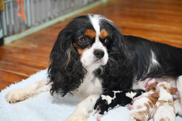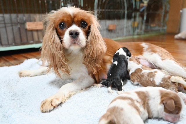 お問い合わせ番号: S_339 仔犬掲載日:2025/07/30 最終更新日:2025/09/27 キャバリアキングチャールズスパニエル 男の子 3匹 女の子 2匹 親犬コメント おっとりマイペースな性格のお母さんです 仔犬コメント 7月25日にキャバリアが産まれました。健康状態はまだ保障が出来ないため正式にお譲りする事ができません。9月上旬頃に仔犬販売へ掲載予定です。仔犬販売掲載前に飼い主様が決まる事も御座いますので現在の状況についてはお気軽にメール、お電話でお問い合わせ下さい。お客様へのお渡しは生後60日前後となります。予約制となっておりますのでご見学に関しては必ず事前にご連絡下さい。※仔犬販売掲載前に女の子×1、ご家族が決まりました 関連URL https://ameblo.jp/koinu-aporo/entry-12920142851.html https://ameblo.jp/koinu-aporo/entry-12923060238.html https://ameblo.jp/koinu-aporo/entry-12927760197.html ▲ 画像クリックで拡大します。 9月5日撮影 9月5日撮影 8月14日撮影 8月14日撮影 キャバリアブリーダー 母犬「トルテ」ちゃん