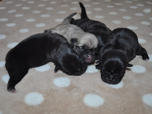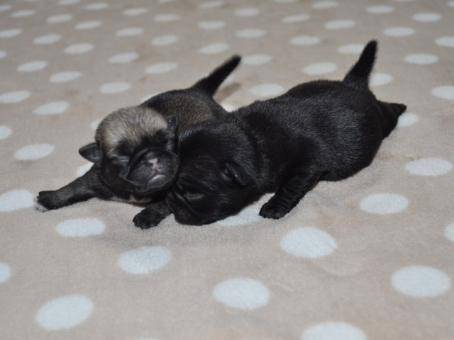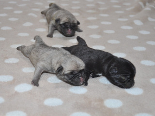 お問い合わせ番号: S_589 仔犬掲載日:2017/04/18 最終更新日:2019/01/09 パグ 男の子 1匹 女の子 2匹 親犬コメント 初産ですが自然分娩が出来、子育ても順調で上手に母乳を飲ませてくれています。 仔犬コメント 4月16日にパグが産まれました。健康状態はまだ保障が出来ないため正式にお譲りする事ができません。5月下旬頃に仔犬販売へ掲載予定です。仔犬販売掲載前に飼い主様が決まる事も御座いますので現在の状況、お問い合わせについてはお気軽にメール、お電話下さい。お客様へのお渡しは生後60日以降となります。ご見学に関しては必ず事前にご連絡下さい。男の子フォーン、女の子ブラック、フォーン※仔犬販売掲載前にフォーンの女の子にご家族が決まりました。 ▲ 画像クリックで拡大します。
