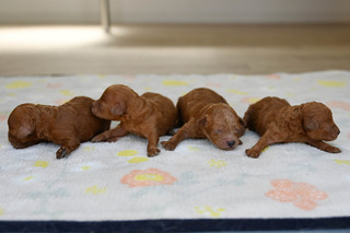 お問い合わせ番号: S_359 仔犬掲載日:2025/12/02 最終更新日:2026/01/24 トイプードル 男の子 2匹 女の子 2匹 親犬コメント 母性の強いお母さんで子育てもとても上手です。 仔犬コメント 11月26日にトイプードルが産まれました。健康状態はまだ保障が出来ないため正式にお譲りする事ができません。1月上旬頃に仔犬販売へ掲載予定です。仔犬中売掲載前に飼い主様が決まる事も御座いますので現在の状況についてはお気軽にメール、お電話でお問い合わせ下さい。お客様へのお渡しは生後60日前後となります。予約制となっておりますのでご見学に関しては必ず事前にご連絡下さい。 関連URL https://ameblo.jp/koinu-aporo/entry-12948835243.html https://ameblo.jp/koinu-aporo/entry-12950041153.html ▲ 画像クリックで拡大します。 12月14日撮影 12月14日撮影 トイプードルブリーダー トイプードルブリーダー