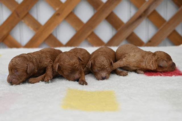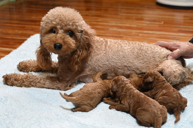お問い合わせ番号: S_359 仔犬掲載日:2025/12/02 最終更新日:2025/12/03 トイプードル 男の子 2匹 女の子 2匹 親犬コメント 母性の強いお母さんで子育てもとても上手です。 仔犬コメント 11月26日にトイプードルが産まれました。健康状態はまだ保障が出来ないため正式にお譲りする事ができません。1月上旬頃に仔犬販売へ掲載予定です。仔犬中売掲載前に飼い主様が決まる事も御座いますので現在の状況についてはお気軽にメール、お電話でお問い合わせ下さい。お客様へのお渡しは生後60日前後となります。予約制となっておりますのでご見学に関しては必ず事前にご連絡下さい。 関連URL https://ameblo.jp/koinu-aporo/entry-12948835243.html ▲ 画像クリックで拡大します。 トイプードルブリーダー トイプードルブリーダー