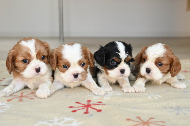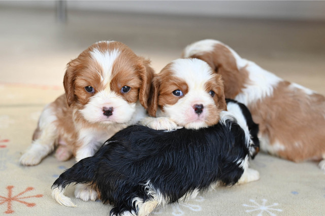 お問い合わせ番号: S_367 仔犬掲載日:2026/01/22 最終更新日:2026/02/13 キャバリアキングチャールズスパニエル 男の子 2匹 女の子 2匹 親犬コメント 小振りな母犬です。性格は穏やかで無駄吠えもありません。 仔犬コメント 1月18日にキャバリアが産まれました。健康状態はまだ保障が出来ないため正式にお譲りする事ができません。2月下旬頃に仔犬販売へ掲載予定です。仔犬販売掲載前に飼い主様が決まる事も御座いますので現在の状況についてはお気軽にメール、お電話でお問い合わせ下さい。お客様へのお渡しは生後60日前後となります。予約制となっておりますのでご見学に関しては必ず事前にご連絡下さい。※仔犬販売掲載前に男の子×1、女の子×1ご家族が決まりました 関連URL https://ameblo.jp/koinu-aporo/entry-12954238570.html https://ameblo.jp/koinu-aporo/entry-12956594429.html ▲ 画像クリックで拡大します。 2月13日撮影 2月13日撮影 キャバリアブリーダー キャバリアブリーダー
