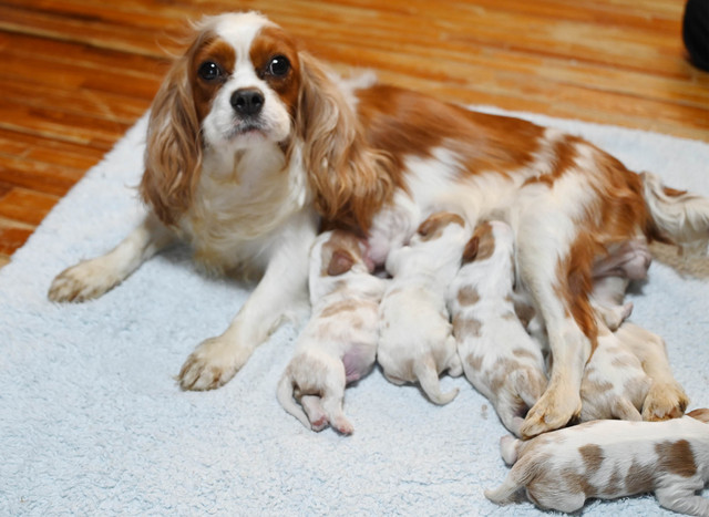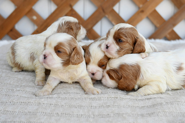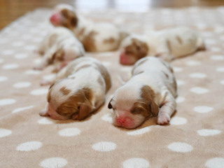 お問い合わせ番号: S_368 仔犬掲載日:2026/02/03 最終更新日:2026/02/18 キャバリアキングチャールズスパニエル 男の子 3匹 女の子 2匹 親犬コメント 穏やかで愛情深いお母さんです。面倒見が良く赤ちゃんもスクスクと成長しています 仔犬コメント 1月30日にキャバリアが産まれました。健康状態はまだ保障が出来ないため正式にお譲りする事ができません。3月上旬頃に仔犬販売へ掲載予定です。仔犬販売掲載前に飼い主様が決まる事も御座いますので現在の状況についてはお気軽にメール、お電話でお問い合わせ下さい。お客様へのお渡しは生後60日前後となります。予約制となっておりますのでご見学に関しては必ず事前にご連絡下さい。※女の子はお残し予定です 関連URL https://ameblo.jp/koinu-aporo/entry-12955617226.html https://ameblo.jp/koinu-aporo/entry-12957115732.html ▲ 画像クリックで拡大します。 1月18日撮影 1月18日撮影 キャバリアブリーダー キャバリアブリーダー