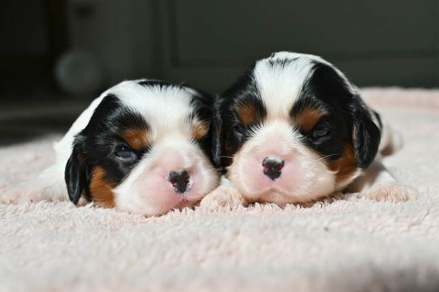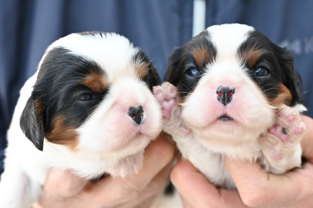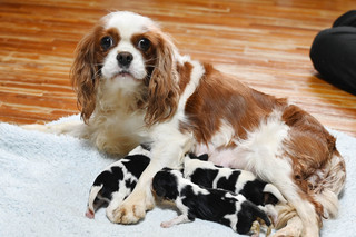 お問い合わせ番号: S_369 仔犬掲載日:2026/02/07 最終更新日:2026/02/20 キャバリアキングチャールズスパニエル 男の子 2匹 女の子 1匹 親犬コメント 小振りサイズのお母さんです。 仔犬コメント 2月3日にキャバリアが産まれました。健康状態はまだ保障が出来ないため正式にお譲りする事ができません。3月上旬頃に仔犬販売へ掲載予定です。仔犬販売掲載前に飼い主様が決まる事も御座いますので現在の状況についてはお気軽にメール、お電話でお問い合わせ下さい。お客様へのお渡しは生後60日前後となります。予約制となっておりますのでご見学に関しては必ず事前にご連絡下さい。 関連URL https://ameblo.jp/koinu-aporo/entry-12955935568.html https://ameblo.jp/koinu-aporo/entry-12957319713.html ▲ 画像クリックで拡大します。 2月20日撮影 2月20日撮影 キャバリアブリーダー キャバリアブリーダー