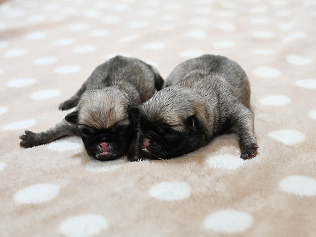 お問い合わせ番号: S_374 仔犬掲載日:2026/02/28 最終更新日:2026/02/28 パグ 男の子 1匹 女の子 1匹 親犬コメント 献身的な子育てをしてくれる優しいお母さんです。 仔犬コメント 2月26日にパグが産まれました。健康状態はまだ保障が出来ないため正式にお譲りする事ができません。4月上旬頃に仔犬販売へ掲載予定です。仔犬販売掲載前に飼い主様が決まる事も御座いますので現在の状況についてはお気軽にメール、お電話でお問い合わせ下さい。お客様へのお渡しは生後60日前後となります。予約制となっておりますのでご見学に関しては必ず事前にご連絡下さい。 ▲ 画像クリックで拡大します。