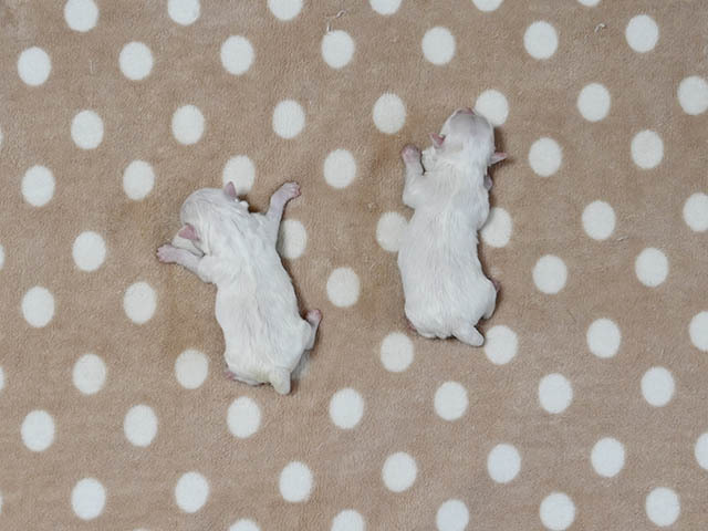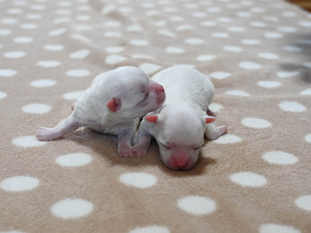 お問い合わせ番号: S_378 仔犬掲載日:2026/04/03 最終更新日:2026/04/03 マルチーズ 男の子 1匹 女の子 1匹 親犬コメント 明るく人懐っこいお母さんが子育ても頑張ってくれています。 仔犬コメント 3月31日にマルチーズが産まれました。健康状態はまだ保障が出来ないため正式にお譲りする事ができません。5月上旬頃に仔犬販売へ掲載予定です。仔犬販売掲載前に飼い主様が決まる事も御座いますので現在の状況についてはお気軽にメール、お電話でお問い合わせ下さい。お客様へのお渡しは生後60日前後となります。予約制となっておりますのでご見学に関しては必ず事前にご連絡下さい。 関連URL https://ameblo.jp/koinu-aporo/entry-12961826276.html ▲ 画像クリックで拡大します。 マルチーズブリーダー マルチーズブリーダー