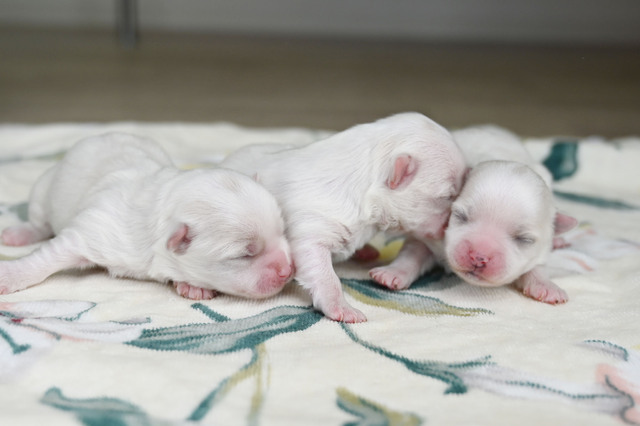 お問い合わせ番号: S_379 仔犬掲載日:2026/04/10 最終更新日:2026/04/10 マルチーズ 男の子 2匹 女の子 1匹 親犬コメント 母性が強く子育てを一生懸命に頑張っています 仔犬コメント 4月2日にマルチーズが産まれました。健康状態はまだ保障が出来ないため正式にお譲りする事ができません。5月中旬頃に仔犬販売へ掲載予定です。仔犬販売掲載前に飼い主様が決まる事も御座いますので現在の状況についてはお気軽にメール、お電話でお問い合わせ下さい。お客様へのお渡しは生後60日前後となります。予約制となっておりますのでご見学に関しては必ず事前にご連絡下さい。 関連URL https://ameblo.jp/koinu-aporo/entry-12962562926.html ▲ 画像クリックで拡大します。 マルチーズブリーダー マルチーズブリーダー