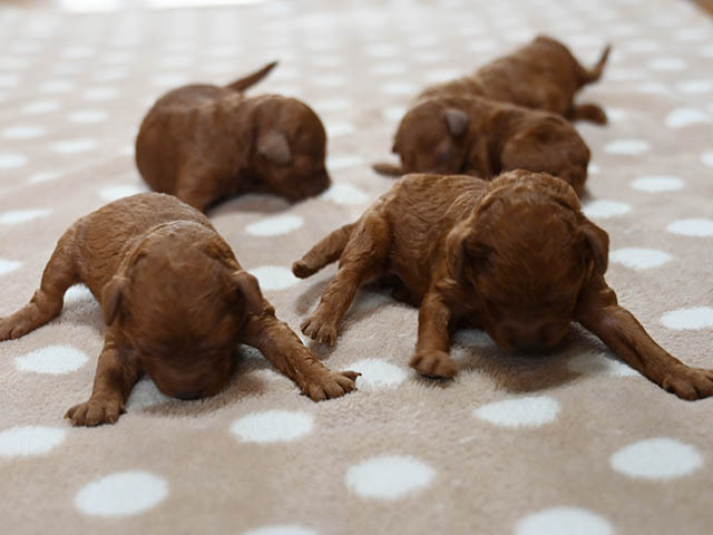 お問い合わせ番号: S_380 仔犬掲載日:2026/04/21 最終更新日:2026/04/21 トイプードル 男の子 2匹 女の子 3匹 親犬コメント おっとりで優しいお母さんです。一緒に子育てを頑張って行きます。 仔犬コメント 4月16日にトイプードルが産まれました。健康状態はまだ保障が出来ないため正式にお譲りする事ができません。5月下旬頃に仔犬販売へ掲載予定です。仔犬販売掲載前に飼い主様が決まる事も御座いますので現在の状況についてはお気軽にメール、お電話でお問い合わせ下さい。お客様へのお渡しは生後60日前後となります。予約制となっておりますのでご見学に関しては必ず事前にご連絡下さい。 関連URL https://ameblo.jp/koinu-aporo/entry-12963701819.html ▲ 画像クリックで拡大します。
