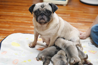 お問い合わせ番号: S_335 仔犬掲載日:2025/07/13 最終更新日:2025/09/09 パグ 男の子 3匹 女の子 2匹 親犬コメント 子煩悩でひたすら子育てに没頭しているお母さんです。 仔犬コメント 7月8日にパグが産まれました。健康状態はまだ保障が出来ないため正式にお譲りする事ができません。8月中旬頃に仔犬販売へ掲載予定です。仔犬販売掲載前に飼い主様が決まる事も御座いますので現在の状況についてはお気軽にメール、お電話でお問い合わせ下さい。お客様へのお渡しは生後60日前後となります。予約制となっておりますのでご見学に関しては必ず事前にご連絡下さい。 関連URL https://ameblo.jp/koinu-aporo/entry-12916201291.html https://ameblo.jp/koinu-aporo/entry-12919454806.html ▲ 画像クリックで拡大します。 7月29日撮影 7月29日撮影 パグブリーダー パグブリーダー