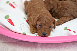 アポロのトイプードルで一番小振りな子です。今回で引退なので最後の子育てです。