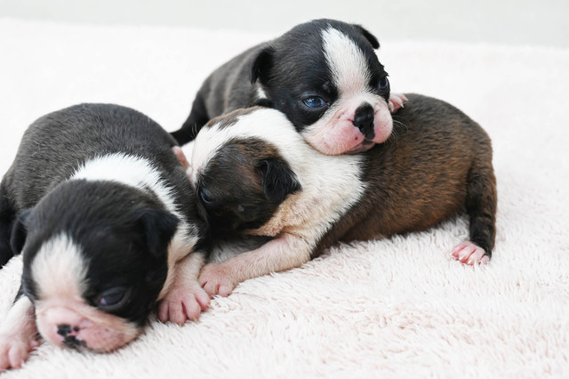 お問い合わせ番号: S_334 仔犬掲載日:2025/07/06 最終更新日:2025/08/19 ボストンテリア 男の子 3匹 女の子 1匹 親犬コメント 初産のお母さんが子育てを頑張っています 仔犬コメント 7月2日にボストンテリアが産まれました。健康状態はまだ保障が出来ないため正式にお譲りする事ができません。8月中旬頃に仔犬販売へ掲載予定です。仔犬販売掲載前に飼い主様が決まる事も御座いますので現在の状況についてはお気軽にメール、お電話でお問い合わせ下さい。お客様へのお渡しは生後60日前後となります。予約制となっておりますのでご見学に関しては必ず事前にご連絡下さい。※仔犬販売掲載前に女の子、ご家族が決まりました 関連URL https://ameblo.jp/koinu-aporo/entry-12914855889.html https://ameblo.jp/koinu-aporo/entry-12917986604.html https://ameblo.jp/koinu-aporo/entry-12921537803.html ▲ 画像クリックで拡大します。 8月8日撮影 8月8日撮影 7月22日撮影 7月22日撮影 ボストンテリアブリーダー ボストンテリアブリーダー