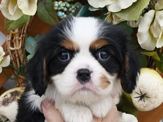 お問い合わせ番号: 1072 仔犬掲載日:2025/11/12 最終更新日:2025/11/13 キャバリアキングチャールズスパニエル 状態 パパママ募集中 販売価格 ¥297,000 性別 男の子 誕生日 2025/10/06 カラー トライカラー 体重 1145g (2025/11/13) コメント ホッペにソースが付いた個性的な柄で、一目で分かります。 お引き渡し方法 全国発送可 ※犬種や健康状態によってご相談させていただく場合がございます。 ワクチンについて 未接種 6種接種後のお渡し 価格備考 血統書5500円、ワクチン5500円、マイクロチップ5500円、生体価格と別途必要な費用です 関連URL https://ameblo.jp/koinu-aporo/entry-12937755213.html https://ameblo.jp/koinu-aporo/entry-12941344999.html https://ameblo.jp/koinu-aporo/entry-12943358759.html ▲ 画像クリックで拡大します。 11月4日撮影 11月4日撮影 10月26日撮影 10月26日撮影 キャバリアブリーダー キャバリアブリーダー